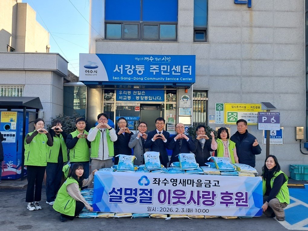 조인천 서강동장은 “설 명절을 맞아 지역주민을 위해 따뜻한 손길을 전해주신 좌수영새마을금고에 감사드린다”며 “기부받은 백미는 지역 내 어려운 가정에 고르게 전달해 모두가 따뜻한 설 명절을 보낼 수 있도록 하겠다”고 덧붙였다.