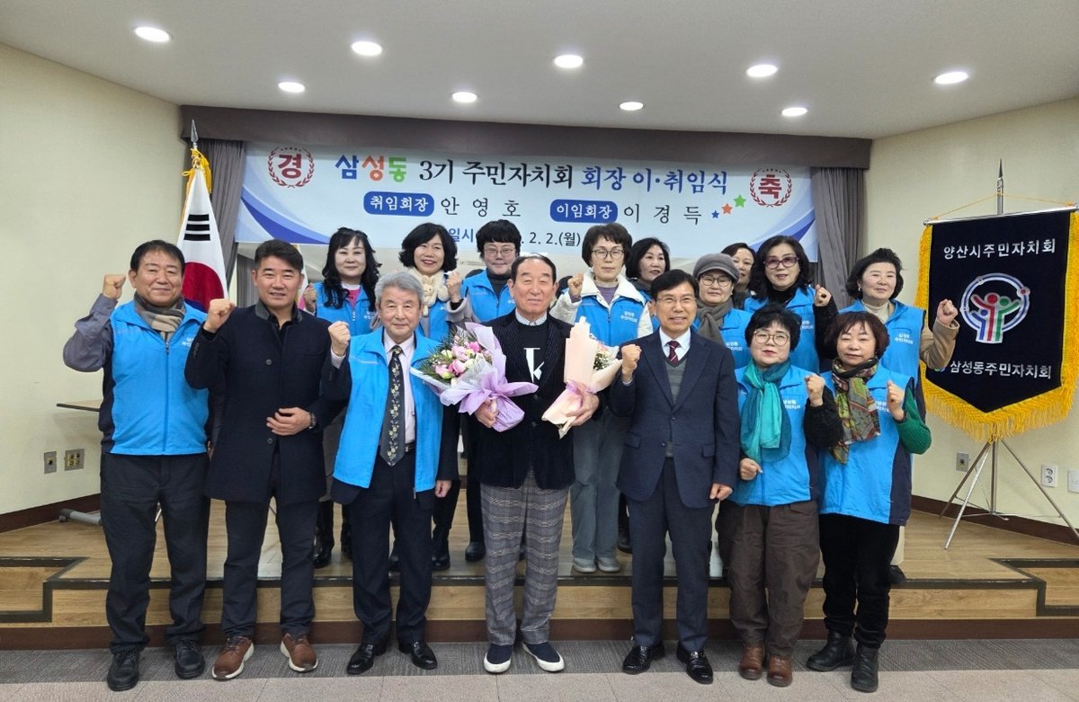 [한국Q뉴스] 양산시 삼성동 주민자치회는 지난 2일 행정복지센터 3층 대회의실에서 주민자치회장 이·취임식을 개최했다.