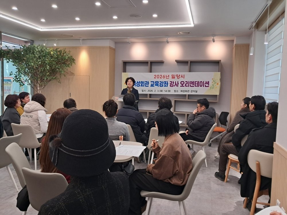 [한국Q뉴스] 경남 밀양시는 3일 여성회관 강의실에서 2026년 제1기 교육강좌 개강을 앞두고 교육 운영의 질을 높이고 강사들과의 소통을 강화하기 위한 오리엔테이션을 개최했다.