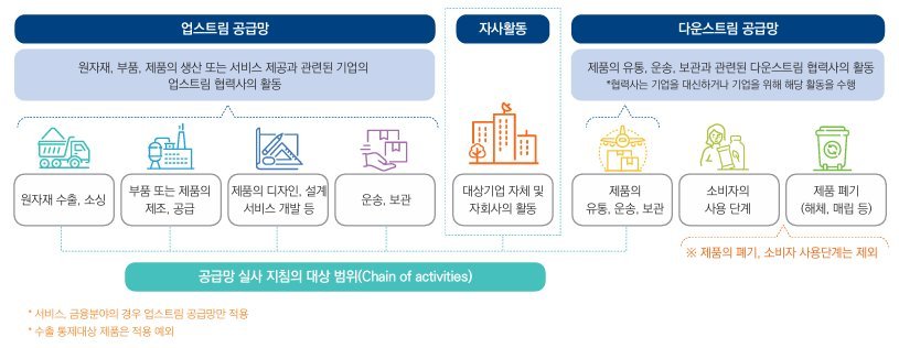기존 EU 공급망 실사지침은 ‘24년 7월 발효되어 ‘27년부터 단계적으로 적용될 예정이었으나, EU 집행위는 ‘25년 2월 EU 기업의 경쟁력 제고를 위해 기업의 실사 의무를 일부 완화하고 적용 시점을 1년 유예하는 내용을 담은 개정안을 제안하였다. 이후 EU 이사회 및 EU 의회의 수정 의견을 반영한 최종 개정안이 지난해 12월 삼자 합의에 도달하였으며, 현재 의회 승인을 거쳐 이사회의 최종 승인 절차를 앞두고 있다.