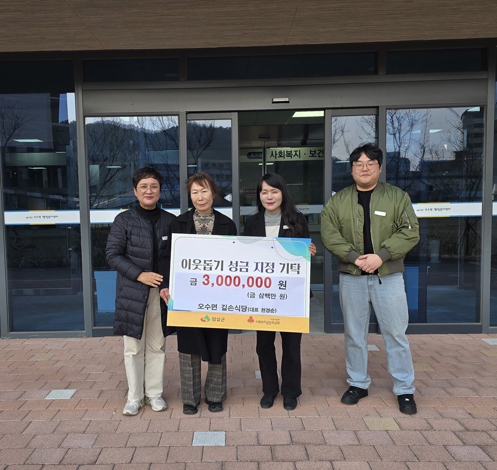 [한국Q뉴스] 오수면 길손식당는 지난달 29일 설명절을 맞아 지역 내 어려운 이웃을 돕기 위해 성금 300만원을 오수면사무소에 기탁했다.
