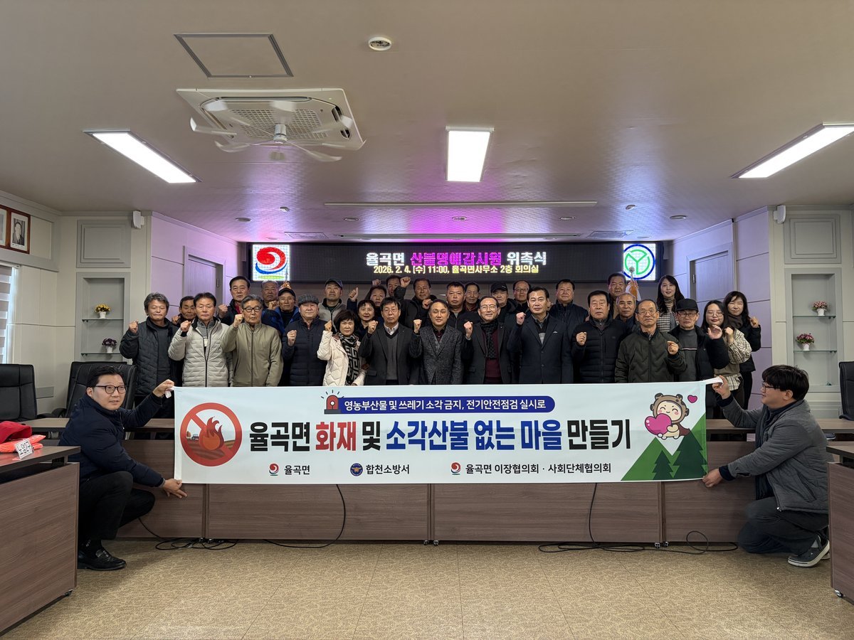 [한국Q뉴스] 합천군 율곡면은 4일 이장회의를 맞아 최근 산불재난위기경보가 '경계'단계로 발령되고 건조주의보가 이어지는 등 산불 발생 위험이 높아짐에 따라, 선제적인 산불 예방 대책으로 전 마을 이장을 '산불명예감시원'으로 위촉하고 '율곡면 화재 및 소각 산불 없는 마을 만들기'캠페인을 실시했다.