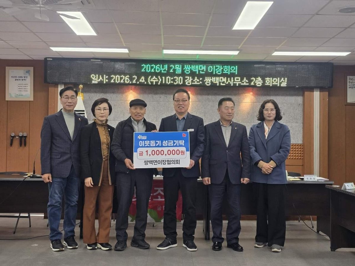 쌍백면 이장협의회는 매년 이웃돕기 성금기탁을 통해 지속적으로 이웃 사랑을 실천하고 있다.