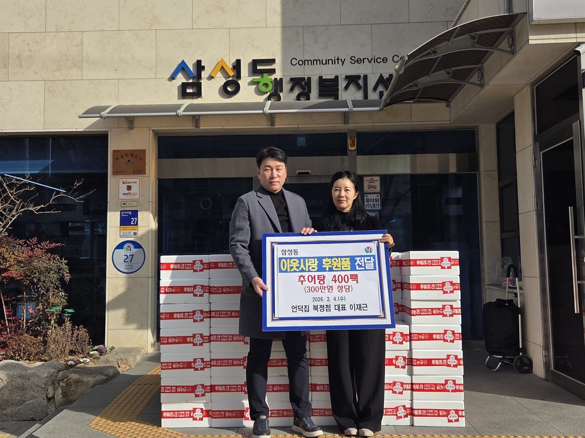 박숙진 삼성동장은 “꾸준한 나눔을 실천해 주신 언덕집 북정점에 깊이 감사드리며 이러한 따뜻한 마음이 많은 분들께 큰 힘이 되고 있다”며 “이러한 나눔이 더 많은 이웃들에게 전해지길 바란다”고 전했다.