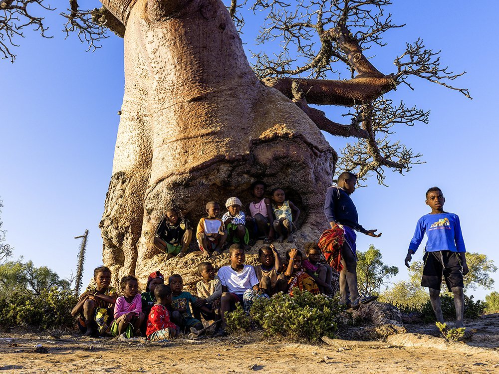 마다가스카르의 바오밥은 수백 년에서 수천 년에 이르는 시간을 살아온 존재로 현지에서는 신성한 나무이자 공동체의 정신적 지주로 여겨진다.
