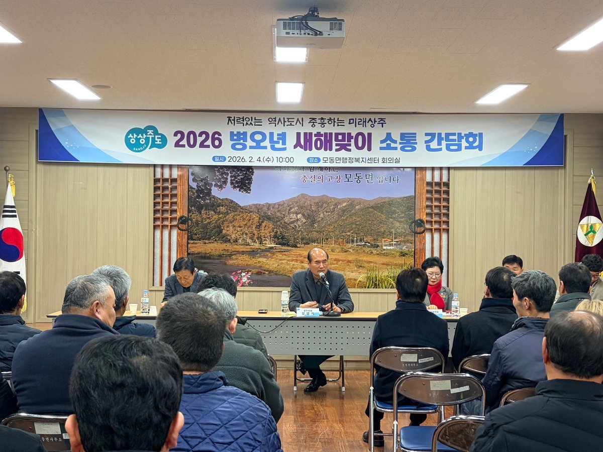 [한국Q뉴스] 상주시 모동면은 2월 4일 오전 10시, 모동면 행정복지센터 회의실에서 2026 병오년 새해맞이 소통 간담회를 열고 지역 현안과 시정 방향을 공유하는 소통의 자리를 마련했다.