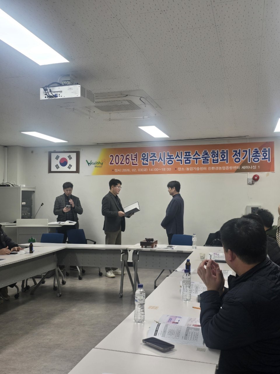 [한국Q뉴스] 원주시 농식품 수출협회는 지난 3일 농업기술센터 세미나실에서 ‘2026년도 정기총회’를 개최하고 올해 원주시 농식품 수출 확대를 위한 핵심 추진 과제를 논의했다.