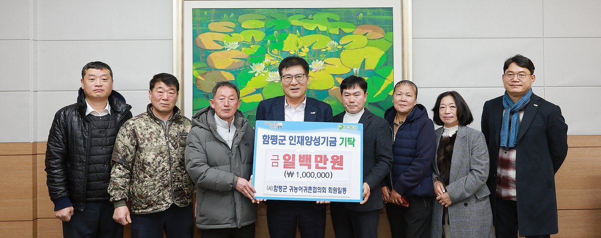 함평군은 “지난 4일 함평군귀농어귀촌협의회와 함평읍 내교1리 주민들이 함평군 인재양성기금에 각각 1백만 원을 기탁했다”고 5일 밝혔다.