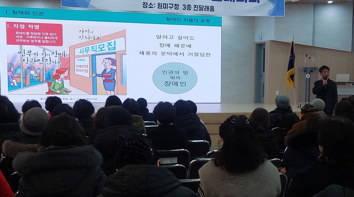 이날 교육은 곽병권 부천시장애인인권센터장이 강사로 나서 장애와 인권, 장애인 학대 및 대응 방법, 장애 유형별 소통과 지원, 인권센터 대응 사례, 활동지원사 신고 사례 등을 중심으로 진행됐다.
