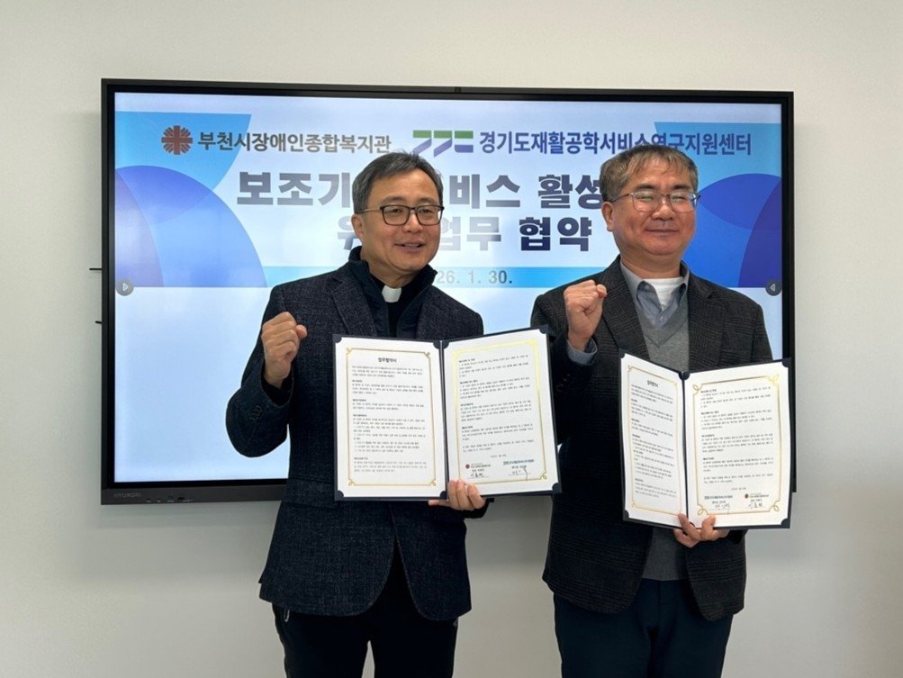 [한국Q뉴스] 부천시장애인종합복지관과 경기도재활공학서비스연구지원센터는 지난 1월 30일 장애인을 위한 보조기기 통합지원서비스 체계 구축을 목적으로 업무협약을 체결했다.