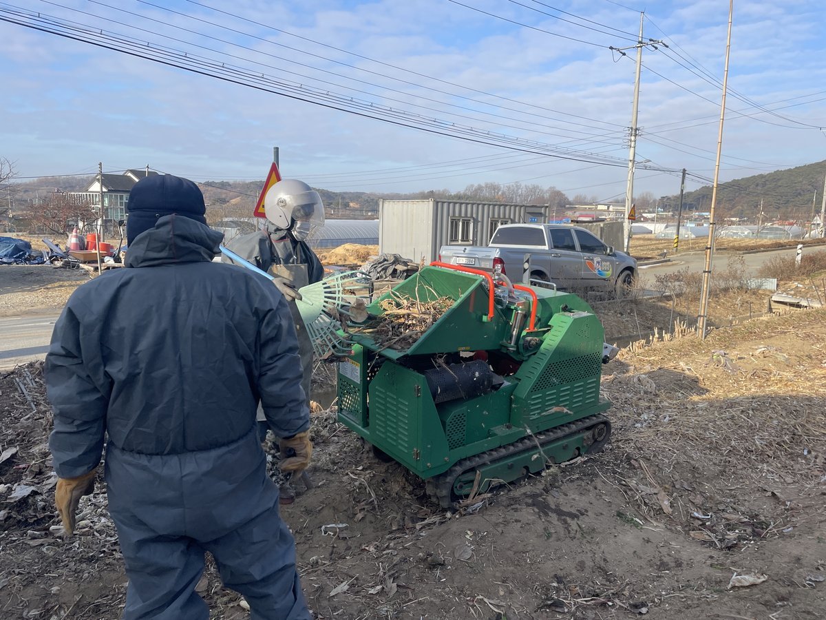 파쇄지원은 전액 무상으로 운영되며 인력과 잔가지 파쇄기를 투입해 현장에서 직접 작업을 진행한다.