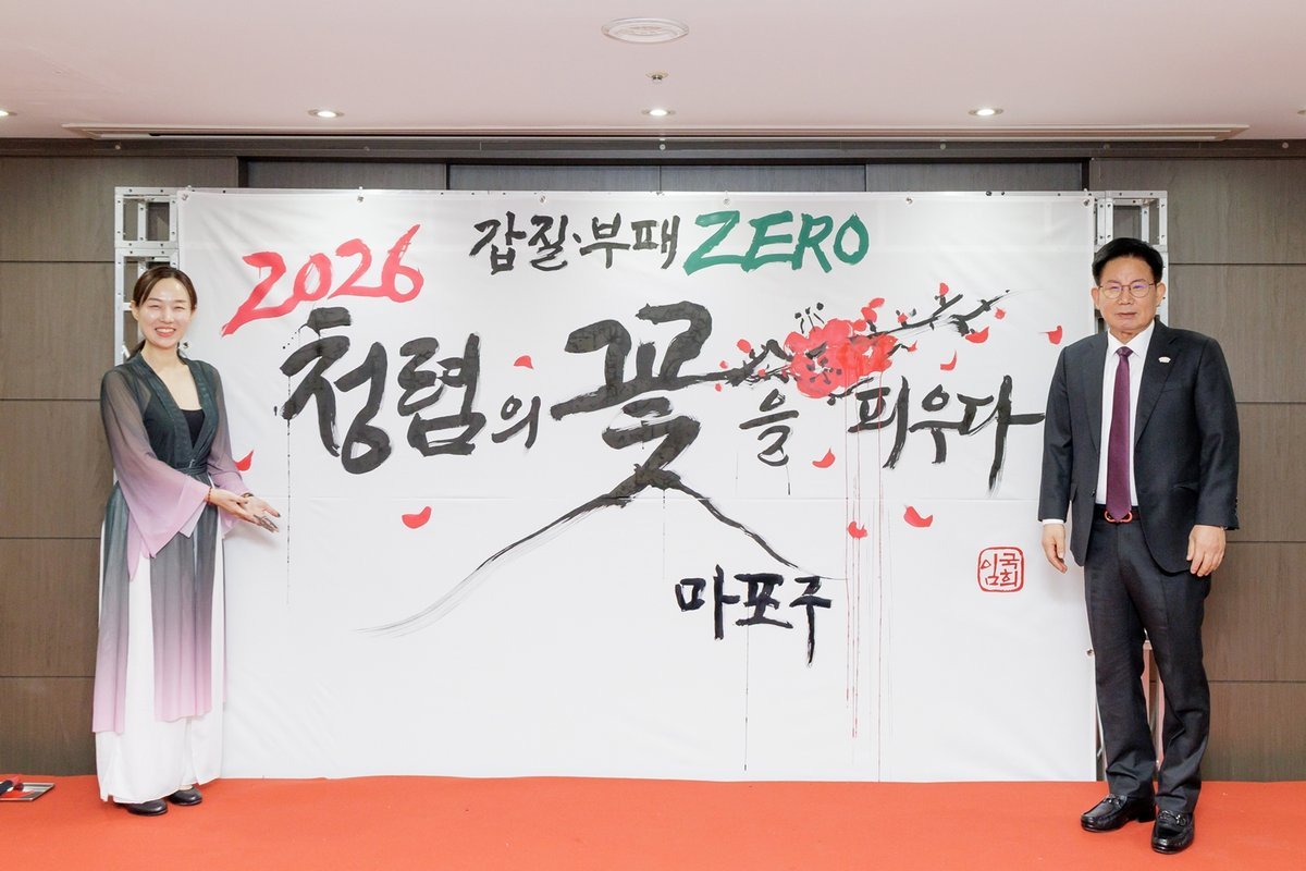 행사에서는 '갑질·부패 ZERO, 2026 청렴의 꽃을 피우다'라는 문구를 주제로 한 청렴 캘리그래피 대붓 퍼포먼스도 함께 진행됐다.