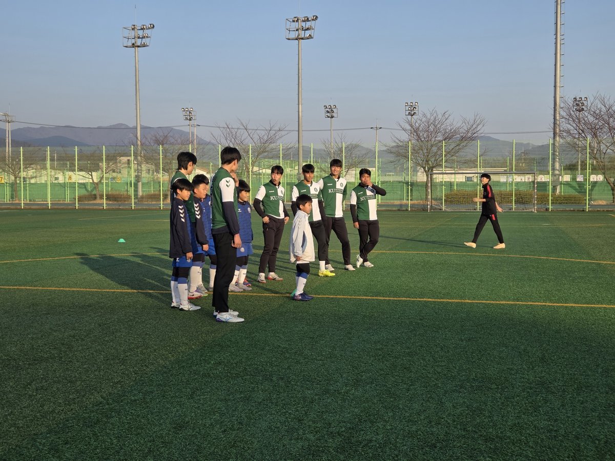 [한국Q뉴스] 건국대학교 축구부는 지난 2월 4일 사천스포츠클럽 유소년 축구 회원들을 대상으로 삼천포보조축구장에서 '일일 코칭 클리닉'을 진행했다.