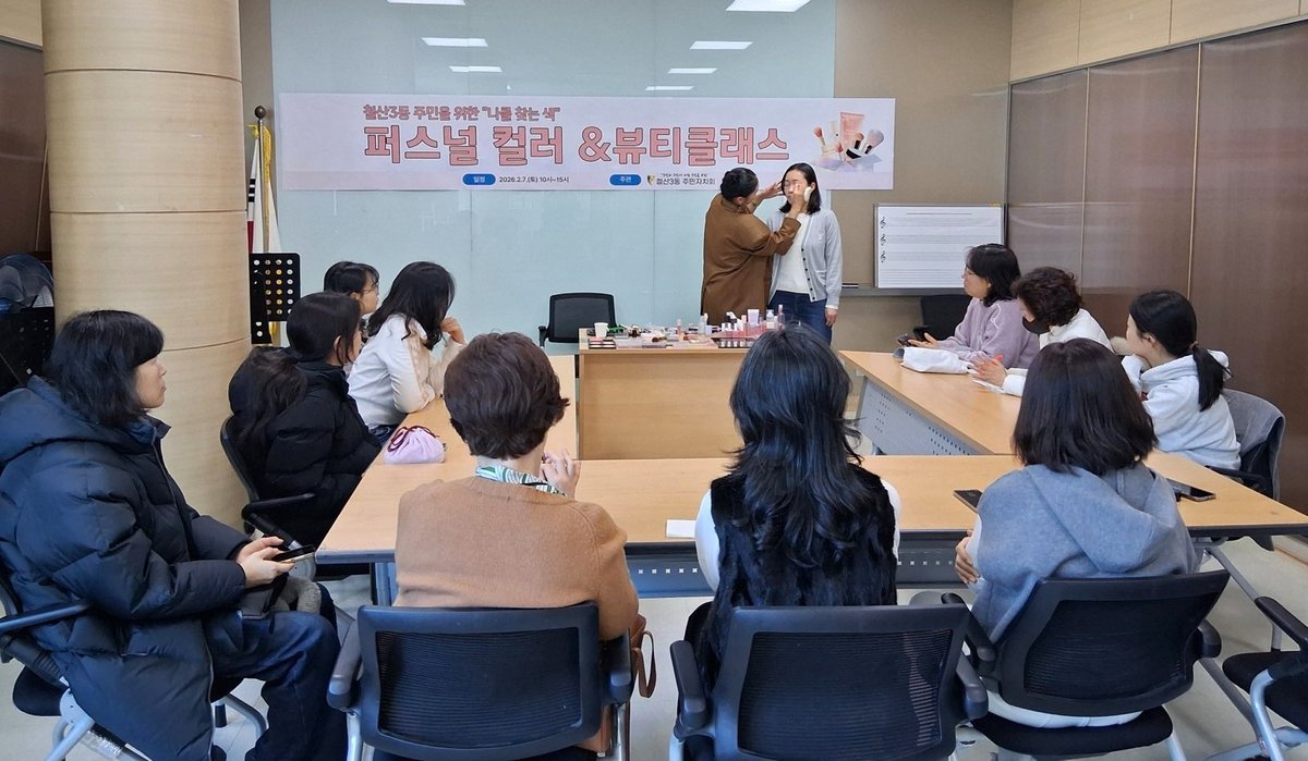 [한국Q뉴스] 광명시 철산3동 주민자치회가 지난 7일 철산3동 행정복지센터 대·소회의실에서 지역 주민을 위한 '나를 찾는 색–퍼스널컬러&뷰티클래스'특강을 성공적으로 개최했다.