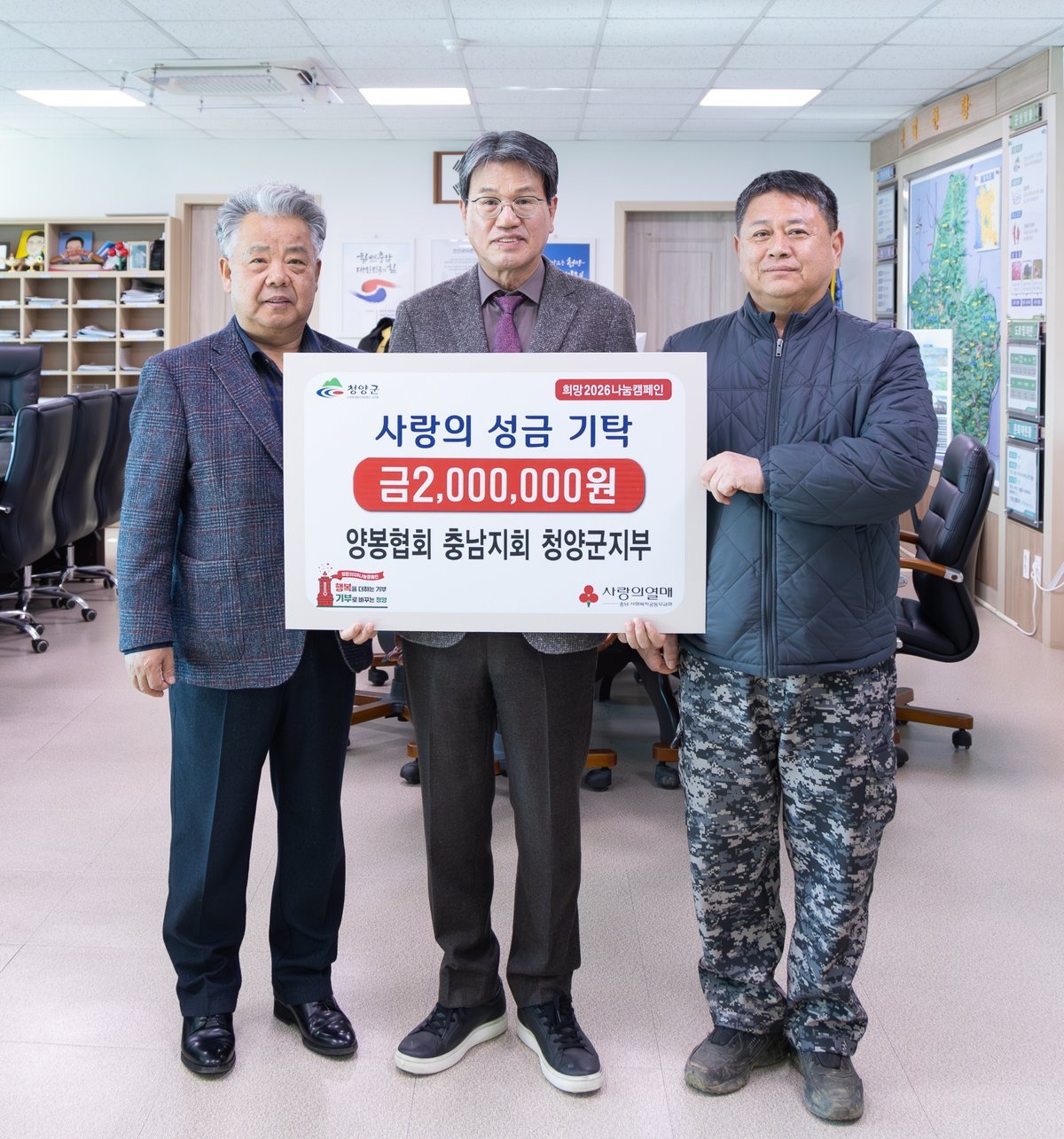 [한국Q뉴스] 청양군은 지난 9일 사단법인 양봉협회 충남지회 청양군지부가 어려운 이웃을 돕기 위한 사랑의 성금 200만원을 기탁했다고 밝혔다.