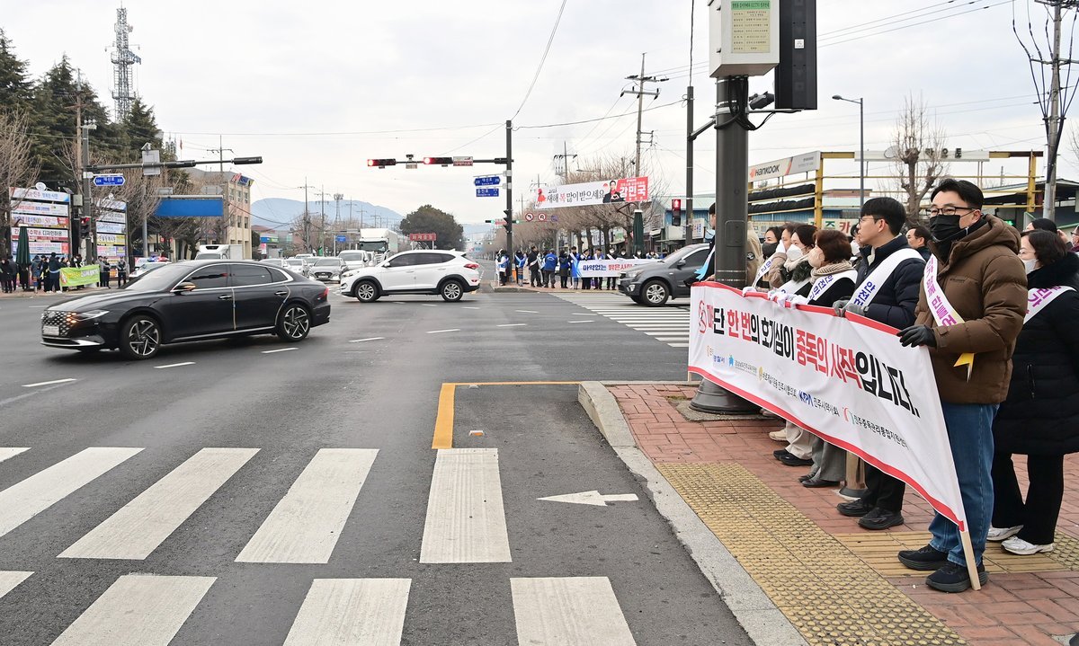 이번 캠페인은 불법 마약류 문제에 대한 선제 대응과 지역사회의 공동 책임을 강화하기 위해 구성된 ‘마약 퇴치 합동 추진단’의 핵심 사업으로 출퇴근 시간대에 유동 인구가 많은 공단사거리에서 집중적으로 실시했다.