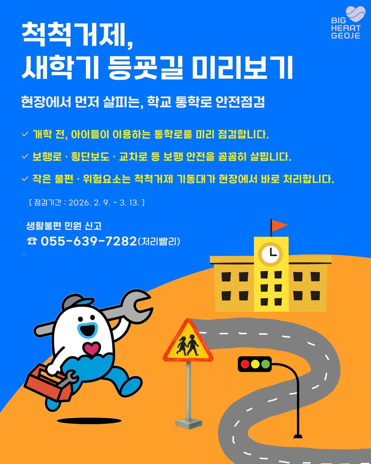 [한국Q뉴스] 거제시는 새학기를 앞두고 학생들의 안전한 통학환경 조성을 위해 '척척거제, 새학기 등굣길 미리보기'기획순찰을 오는 2월 9일부터 3월 13일까지 추진한다.