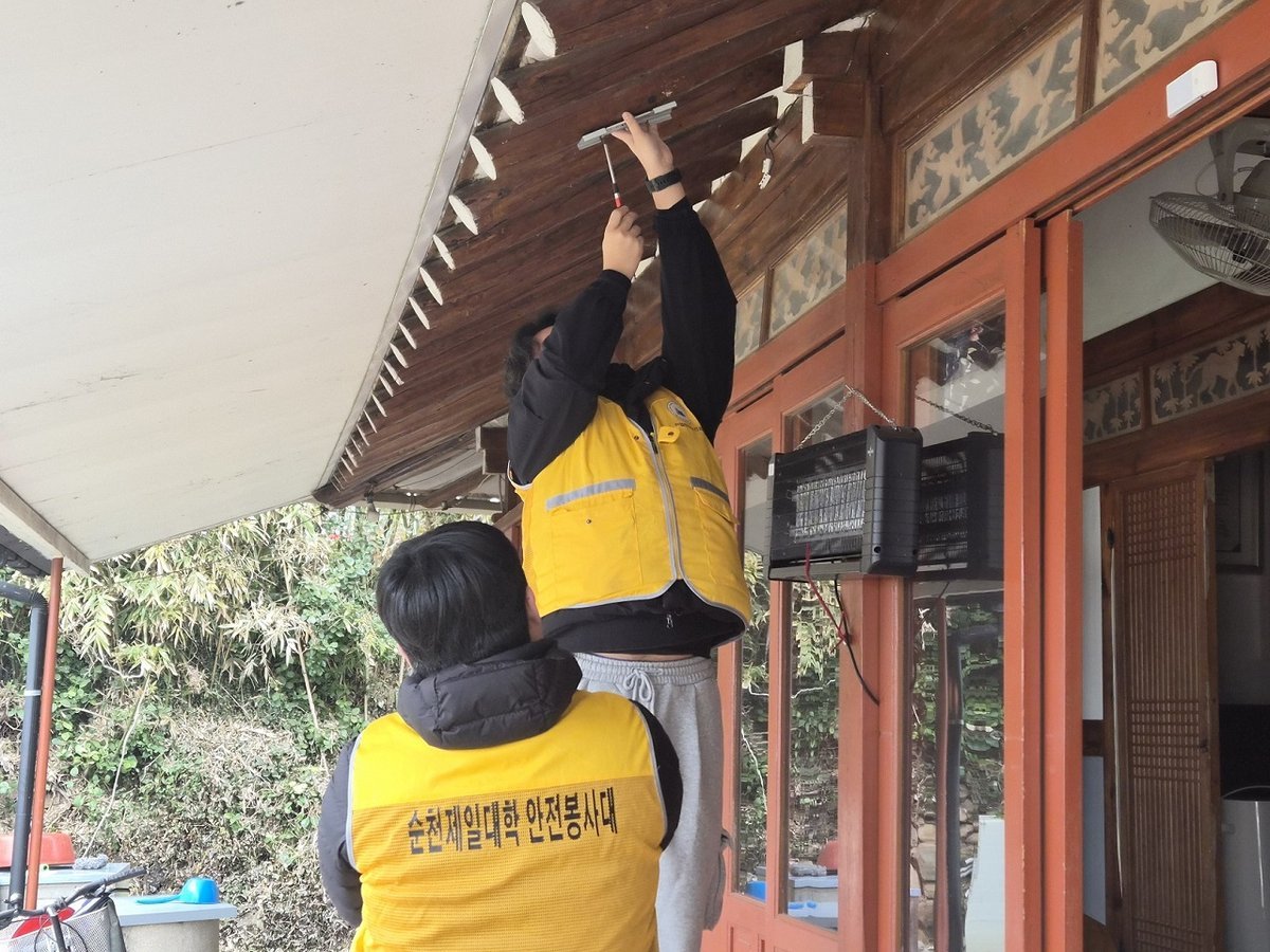 별량면 거차마을에서 열린 이번 봉사활동에는 순천제일대학교 산학협력 취업패키지 과정 학생들이 참여해 취약계층 20세대의 노후 LED 전등을 교체하고 가스차단기를 설치했다.