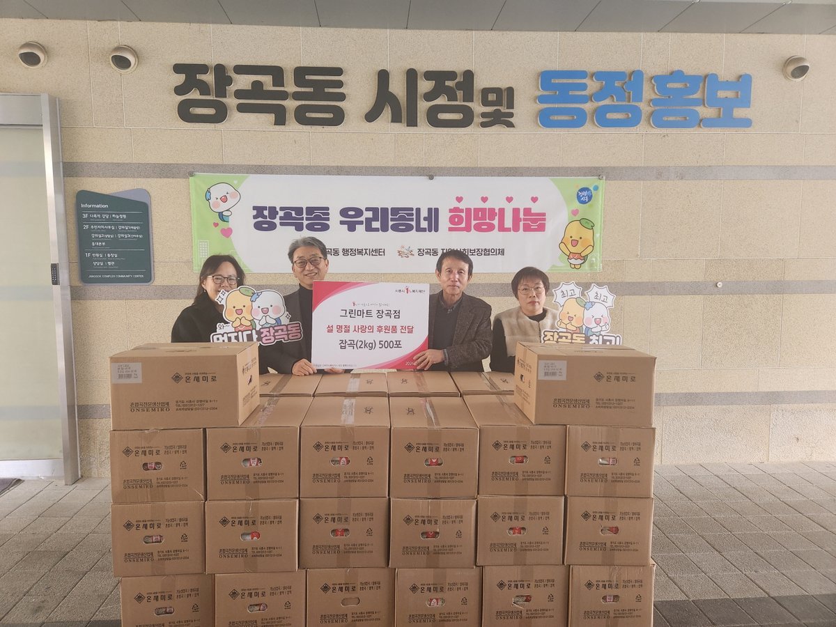 최명환 그린마트 장곡점 대표는 “지난해 기부한 잡곡이 관내 취약계층 이웃들에게 실질적인 도움이 됐다는 이야기를 듣고 큰 보람을 느꼈다”라며 “앞으로도 장곡동 행정복지센터와 긴밀히 협력해 도움이 필요한 이웃들을 지속적으로 지원하고, 지역사회와 상생하며 성장하는 기업이 되도록 노력하겠다”라고 말했다.