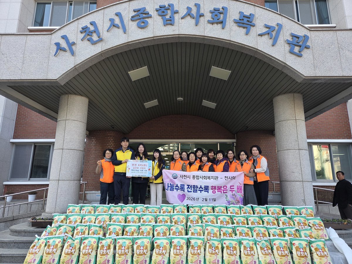 [한국Q뉴스] 사천시 종합사회복지관은 한전KPS 삼천포사업처에서 지난 11일 설 명절을 앞두고 지역 내 취약계층을 위한 나눔을 위한 백미를 기탁했다고 12일 밝혔다.