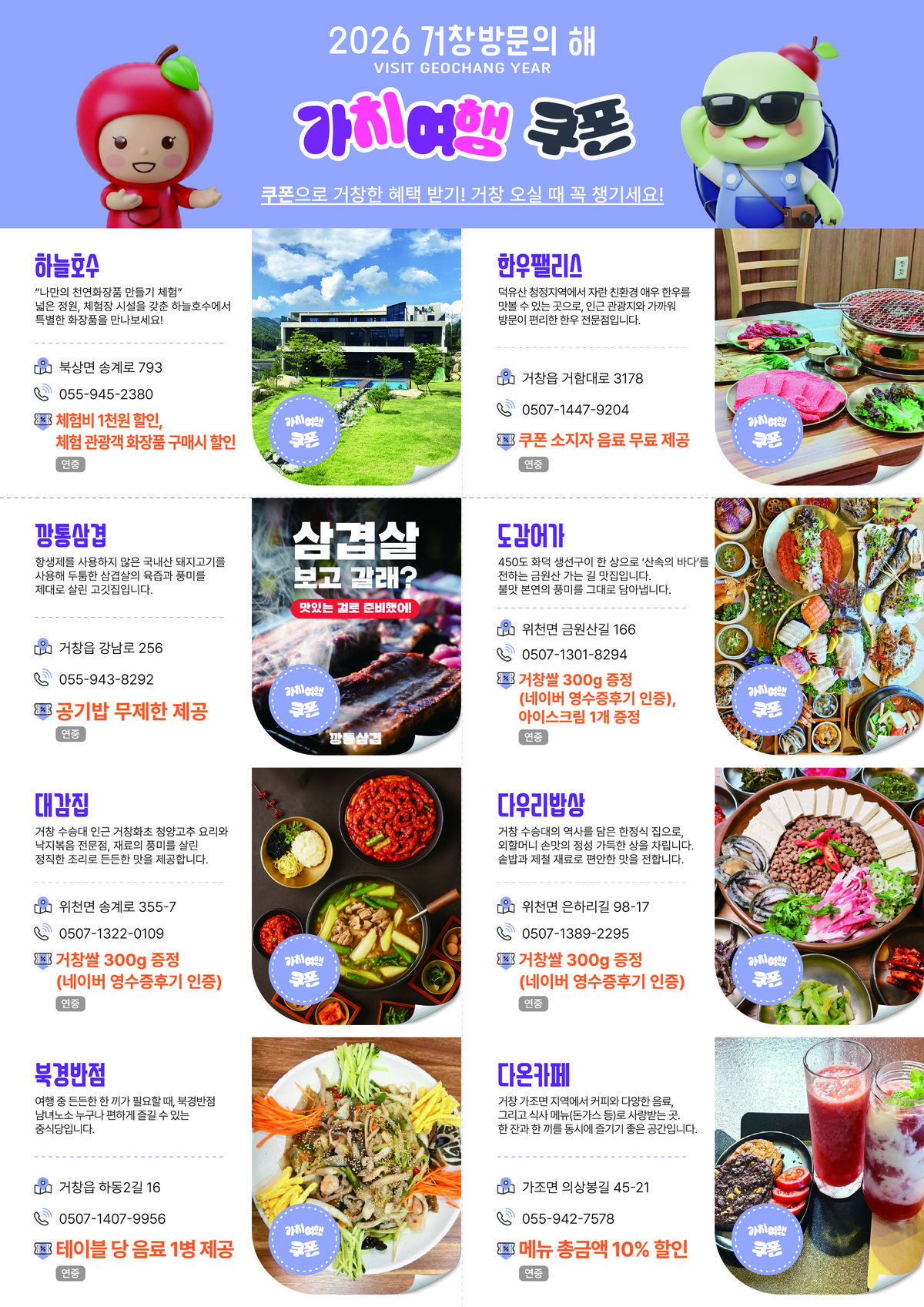 참여업체들은 할인, 추가 서비스, 체험 혜택 등 각자의 방식으로 관광객을 맞이하며 '환대와 감동'이라는 거창방문의 해의 방향성을 현장에서 직접 실천하고 있다.