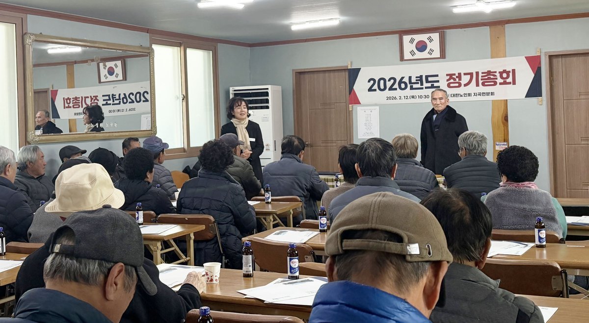 이날 정기총회에서는 2025년 사업 실적 및 결산보고와 함께 신임 분회장 선출, 2026년 사업계획 등에 대한 논의가 진행됐으며 지역 노인복지 증진과 노인회 활성화를 위한 심도 있는 의견 교환이 이뤄졌다.